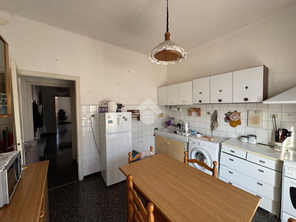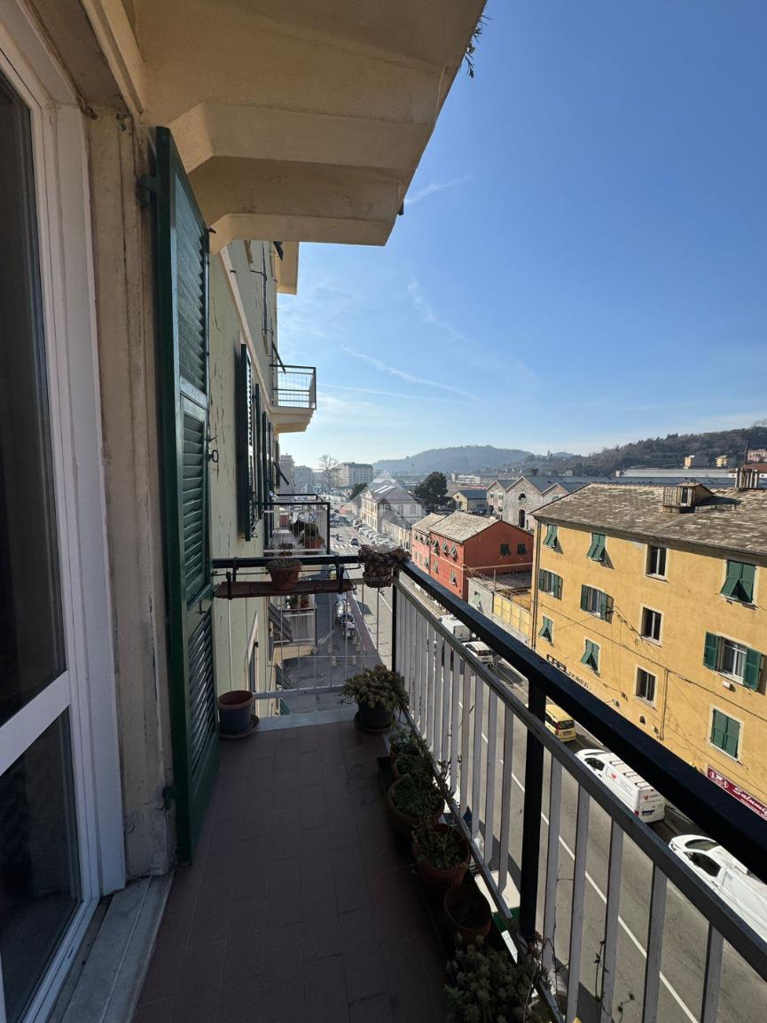 Via Rivarolo, ci troviamo nel quartiere di Teglia, comodo a mezzi e servizi di ogni genere. In condominio ordinato e dotato di ascensore, proponiamo in vendita appartamento sito al quarto piano. Ci accoglie l'ingresso arredabile che ci accompagna alla zona notte, composta da due camere da letto matrimoniali di generosa metratura, di cui una con portafinestra e balcone, e di una camera da letto singola. La zona giorno è composta da una quarta stanza, oggi utilizzata come soggiorno e da una cucina abitabile con portafinestra con accesso al secondo balcone. Il bagno è dotato di vasca e finestra. L'immobile si presenta in stato originale ed è attualmente affittato con contratto in scadenza a marzo 2027.