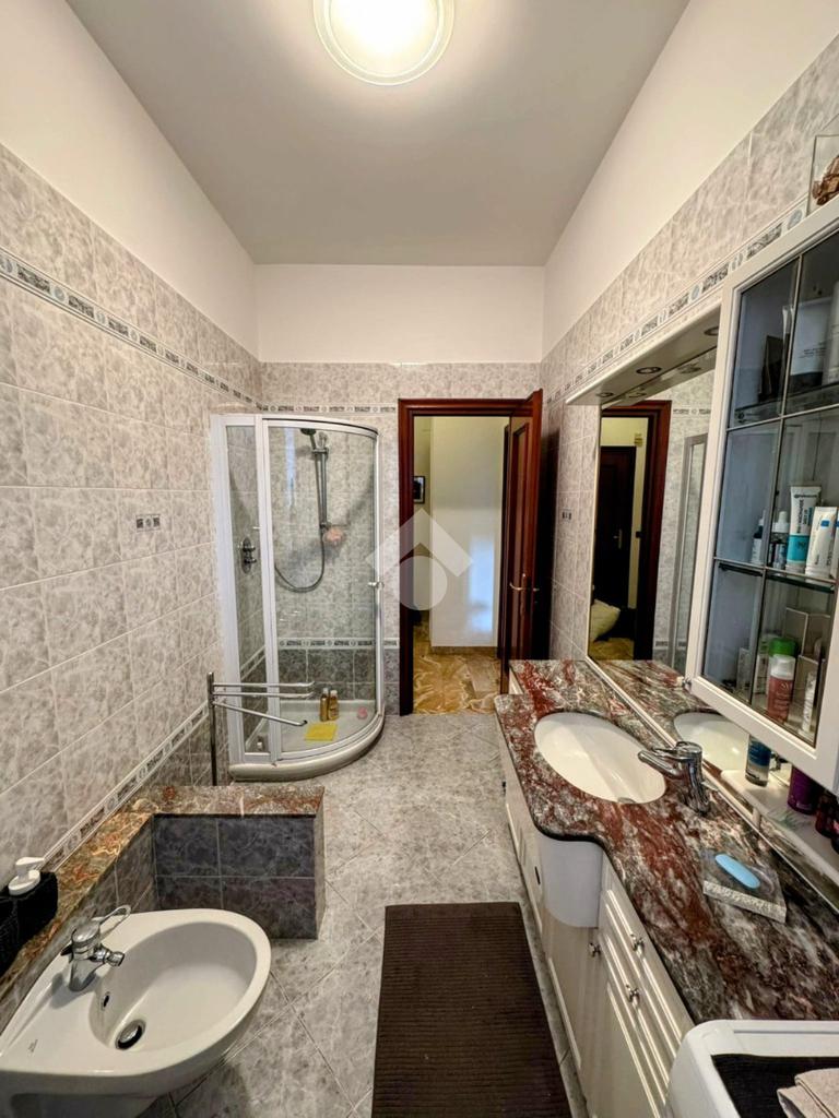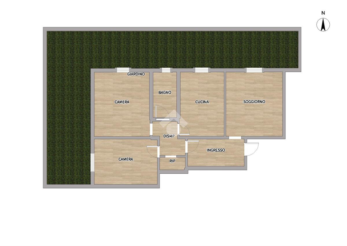 Ci accoglie l’ingresso arredabile il quale ci accompagna alla prima stanza, attualmente utilizzata come salone. Proseguendo troviamo la zona notte composta da due camere da letto, entrambe matrimoniali di generosa metratura. La cucina è abitabile. Il bagno piastrellato sui toni chiari, dotato di box doccia e finestra. Tutti i vani, ad eccezione di una camera da letto e del bagno, sono dotati di portafinestra con affaccio sul giardino terrazzato. Completa la proprietà una comoda dispensa. Abbiamo inoltre, nel piazzale antistante il portone d’ingresso, un posto auto assegnato. L’immobile si presenta ristrutturato con impianto elettrico sfilabile, porta blindata ed infissi in pvc doppio vetro. Il riscaldamento è centralizzato.