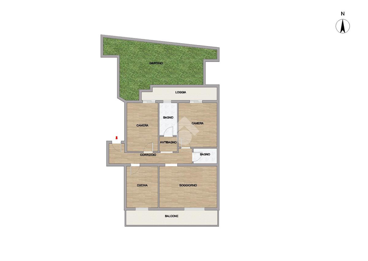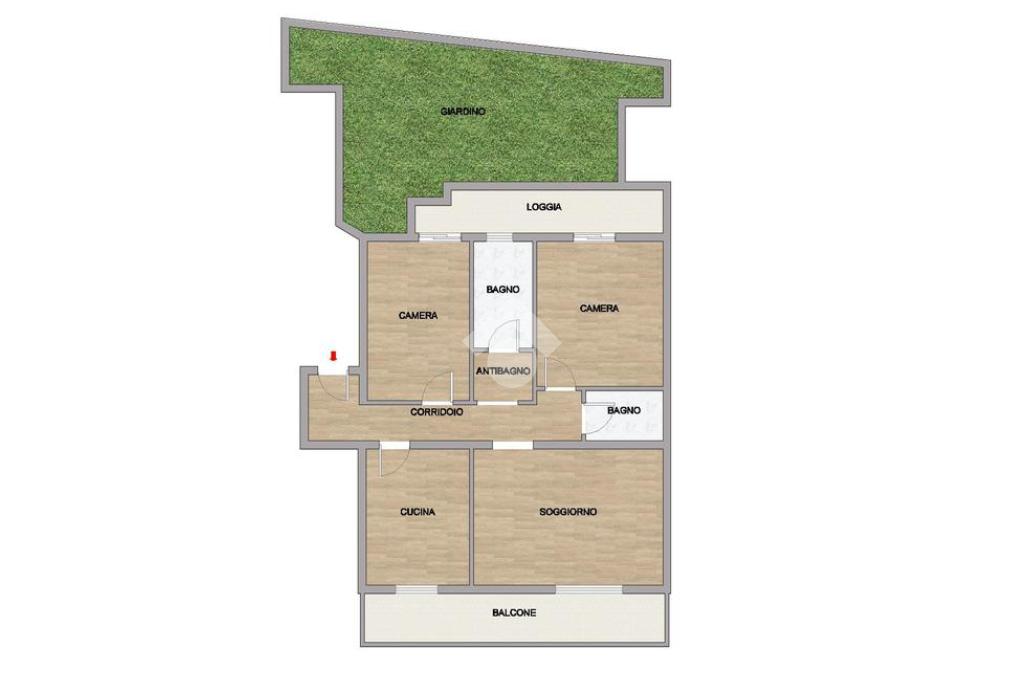 Ci accoglie l’ingresso arredabile il quale ci accompagna alla zona giorno composta da sala, dotata di porta finestra con sfogo sul balcone, ed dalla cucina abitabile anche essa dotata di porta finestra con sfogo sul medesimo balcone. La zona notte è composta da 2 camere da letto di cui una matrimoniale di generosa metratura, mentre la camera singola è dotata di porta finestra con sfogo sul giardino.