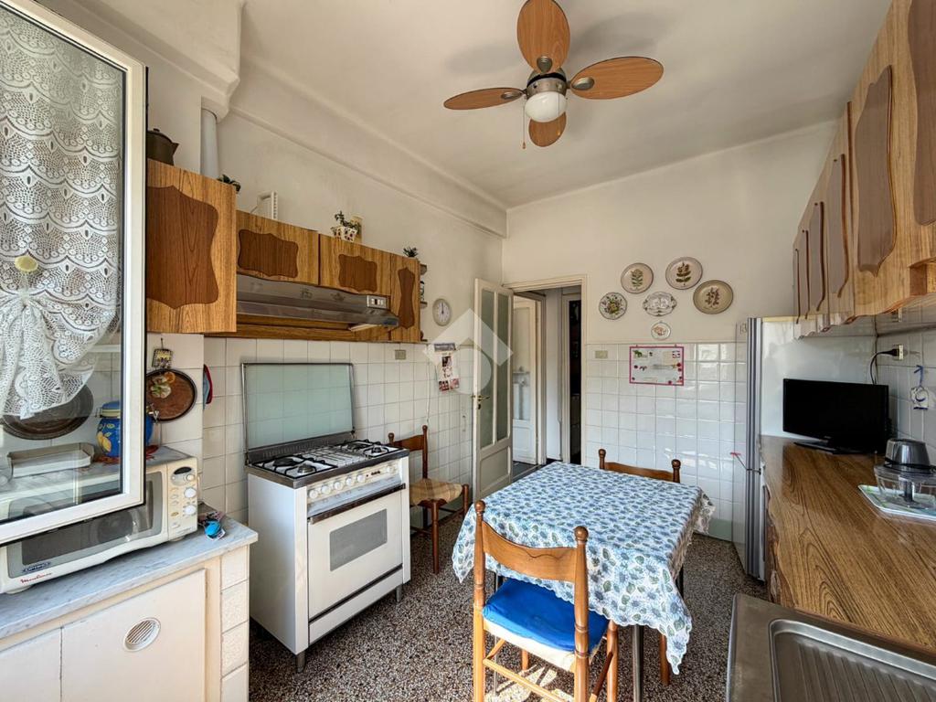 L'immobile si presenta ordinato con infissi in PVC doppiovetro. La pavimentazione è in graniglia alla genovese in tutti i vani.